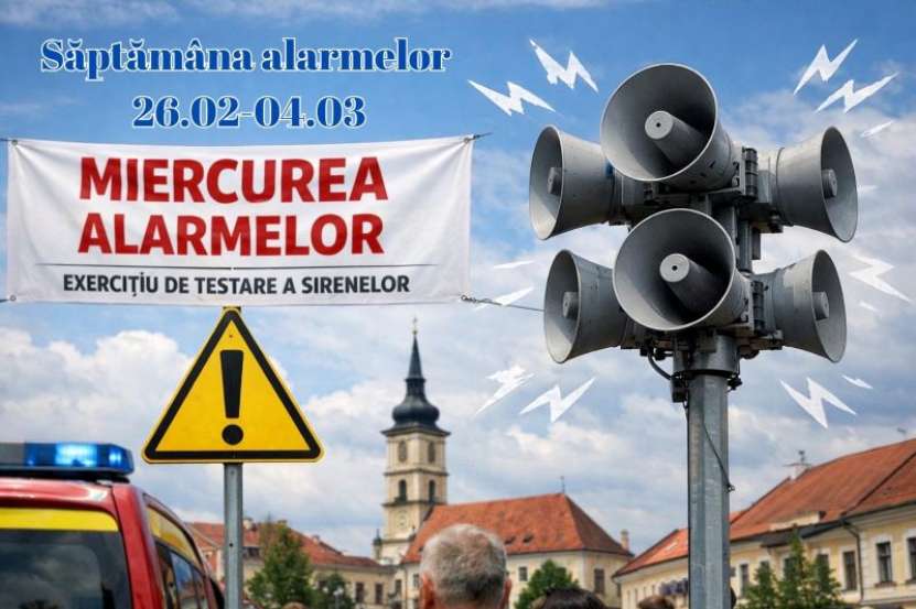Inspectoratul pentru Situații de Urgență „Gheorghe Pop de Băsești” al județului Maramureș va efectua, marți, 4 martie 2026, între orele 10:00 și 11:00, un exercițiu de alarmare publică cu sirenele de pe întreg teritoriul județului.