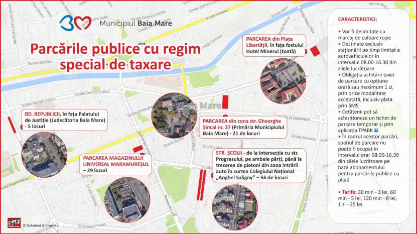 - Parcarea din zona str. Gheorghe Șincai nr. 37 (lângă sediul Primăriei Municipiului Baia Mare) – 21 de locuri